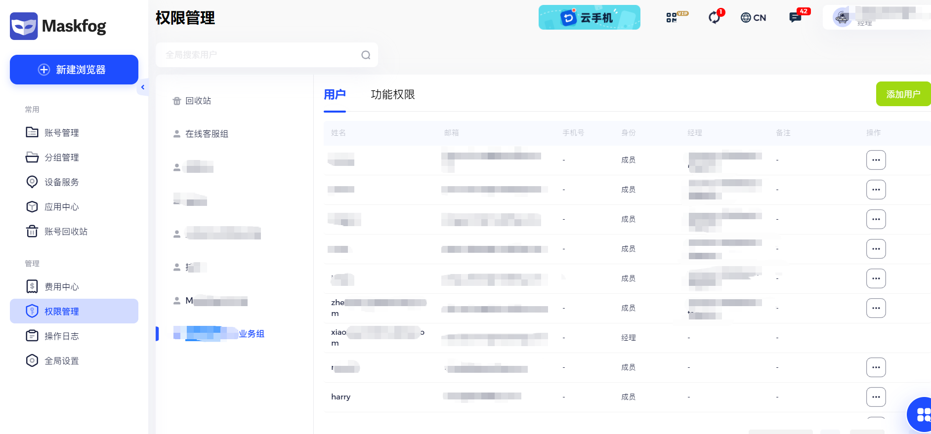 MaskFog 提供了强大的团队协作功能,可帮助你在多人同时操作多个账号时保持安全与可控。