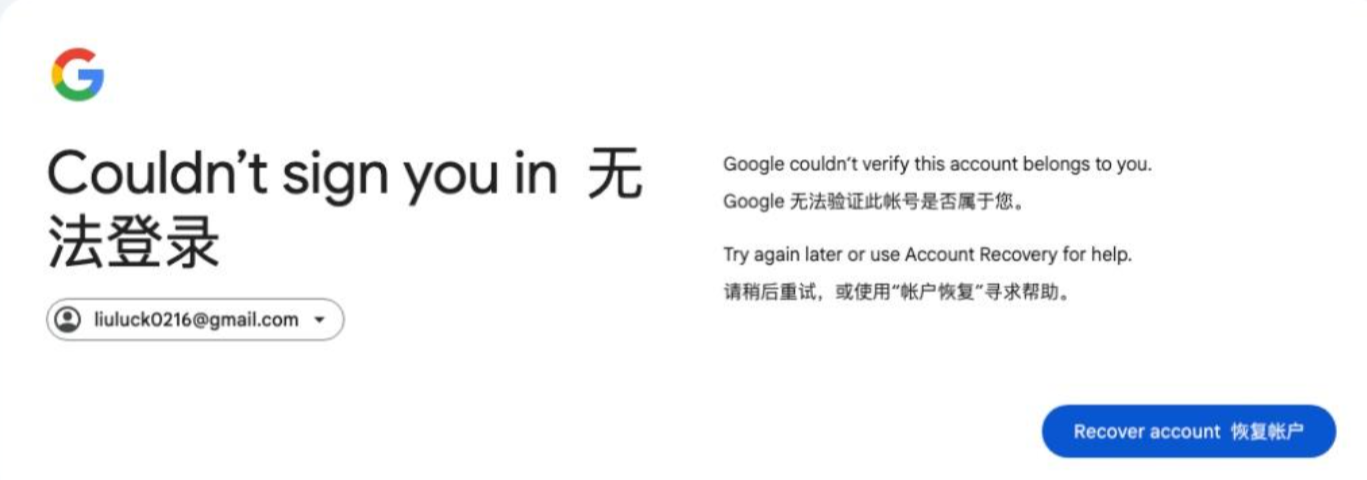 第二步:Google 无法验证此账号是否属于您