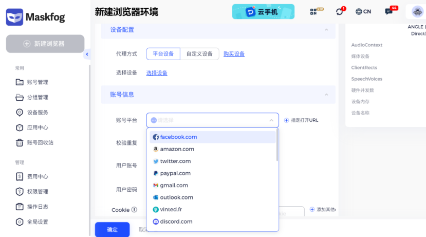 这正是 Maskfog指纹浏览器这类多账号防关联工具的核心应用场景,通过为每个账号创建独立的浏览器环境,使不同账号之间在指纹、登录信息、会话、IP上完全隔离,从而避免账号互相关联。