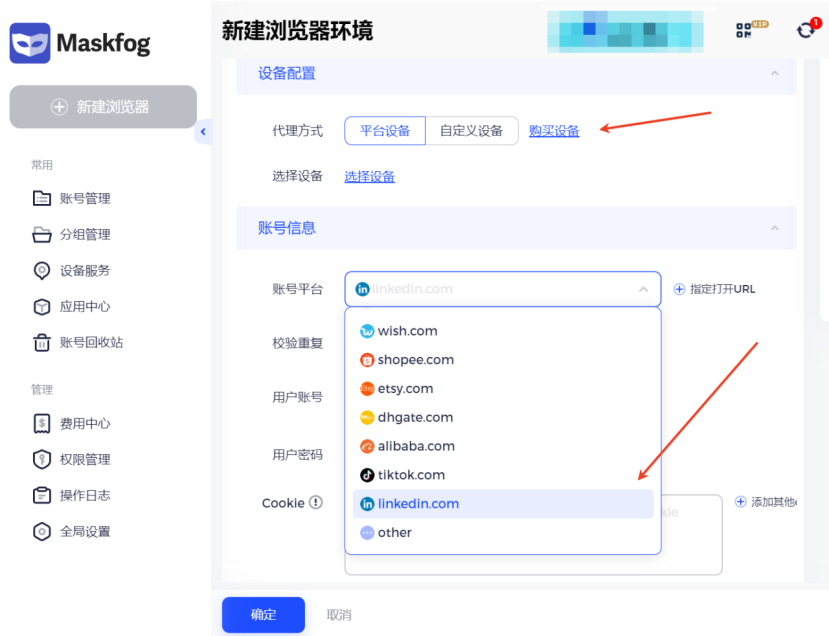 在指纹浏览器里,Maskfog是现在外贸与广告团队最常用的工具之一。它的优势非常契合LinkedIn多账号投放场景: