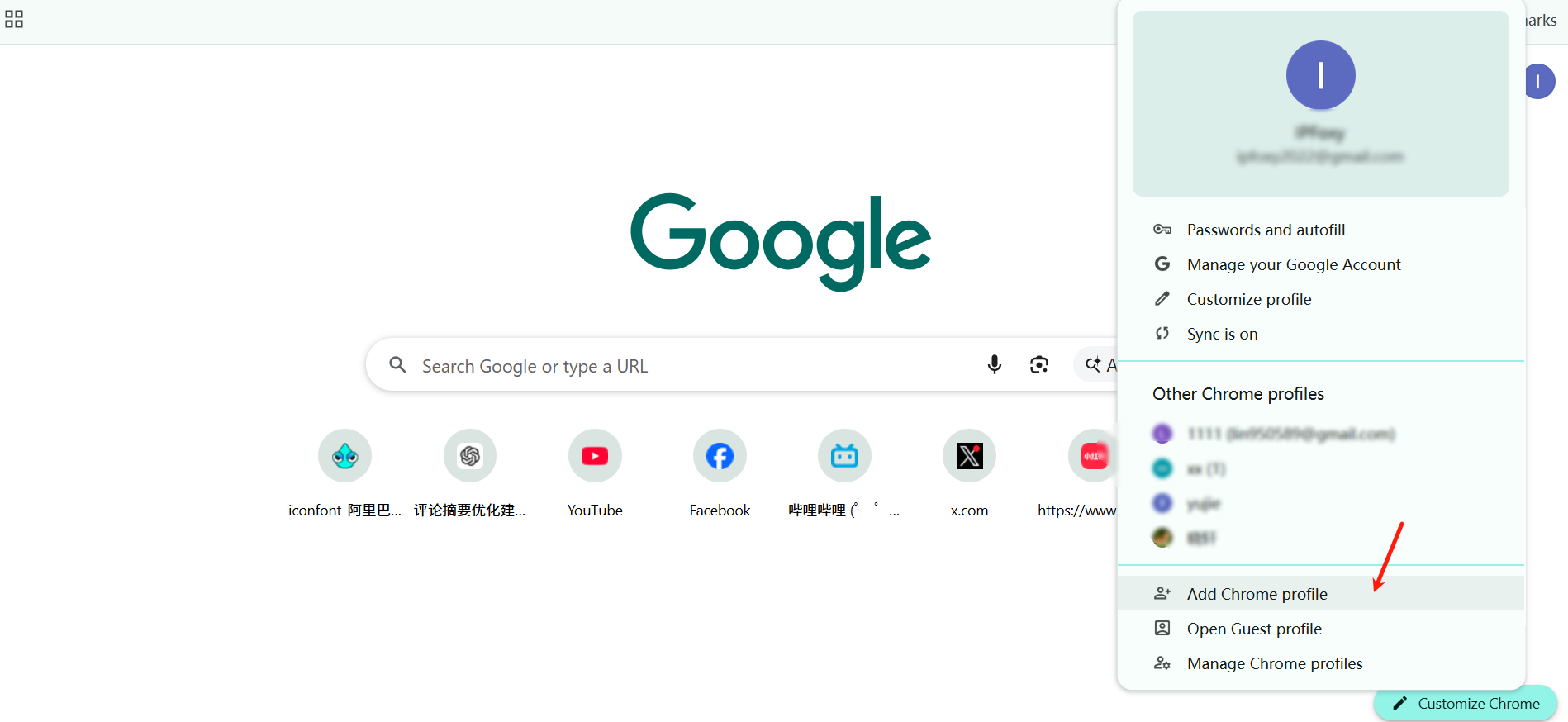 • 点击 Chrome 右上角头像图标;