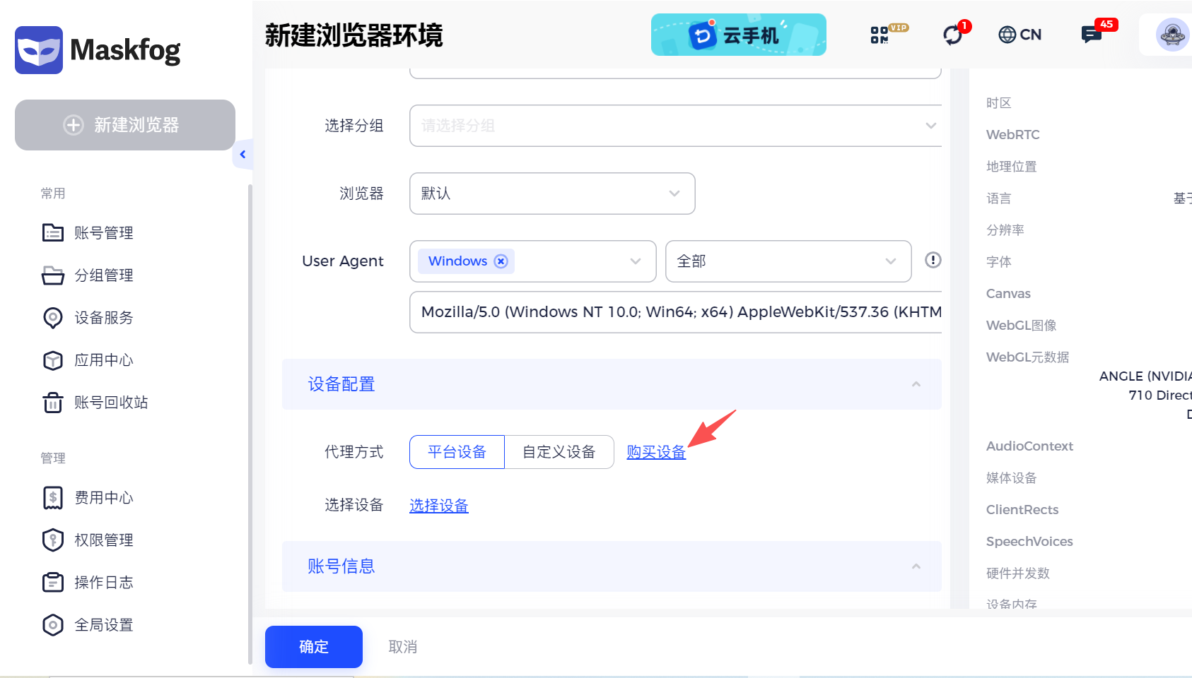 1. 在 Maskfog 中新建浏览器环境;